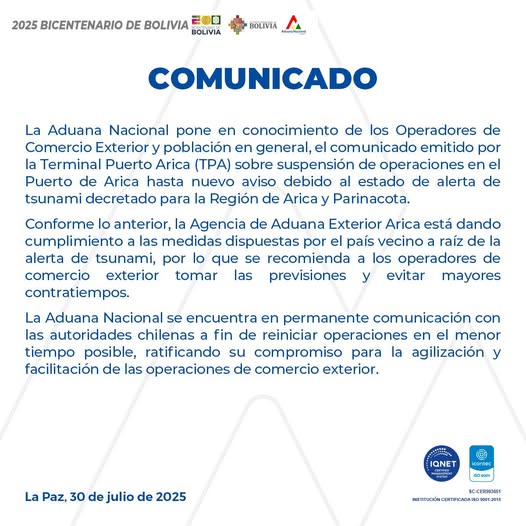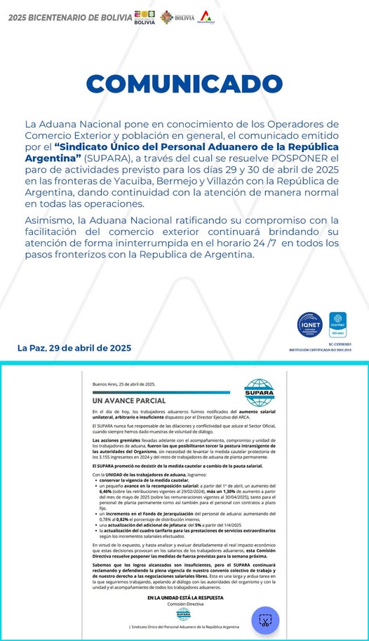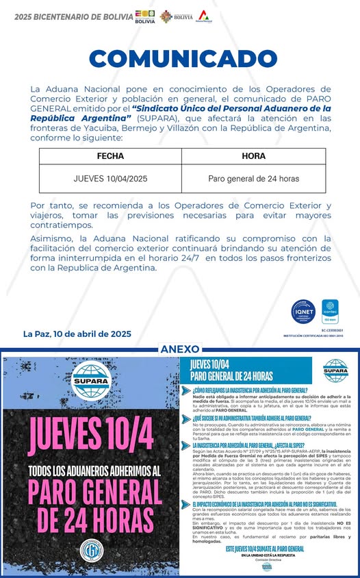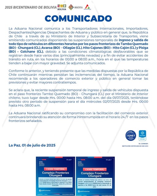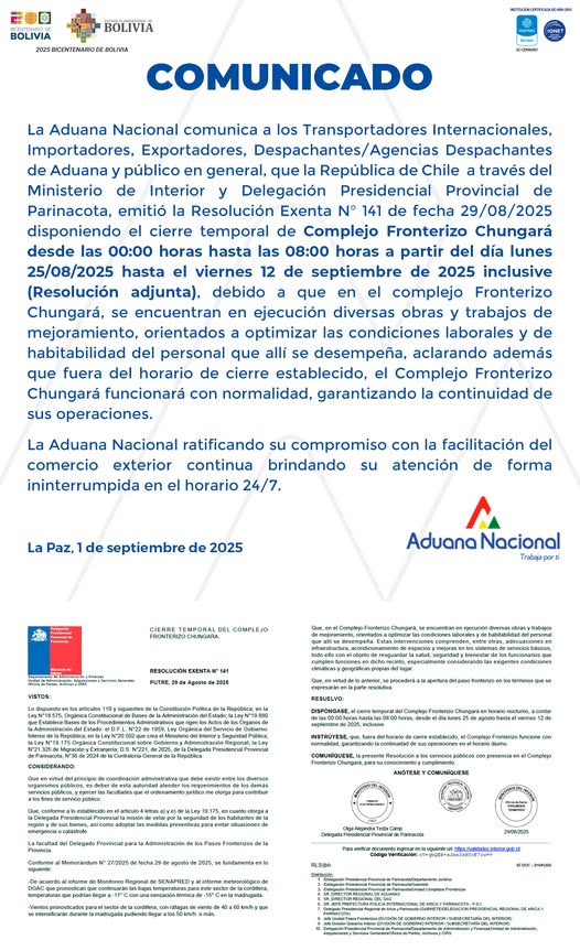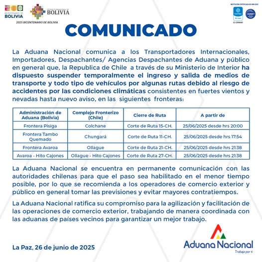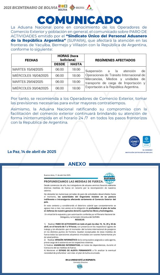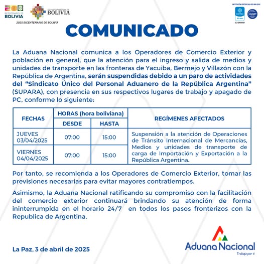 La Aduana Nacional, Comunica A Los Transportadores Internacionales, Importadores, Exportadores, Despachantes De Aduana Y Demas Operadores De Comercio Exterior, Que El Gobierno De La República Argentina Realizará Trabajos De Remodelación En El Paso Internacional La Quiaca-Villazón.