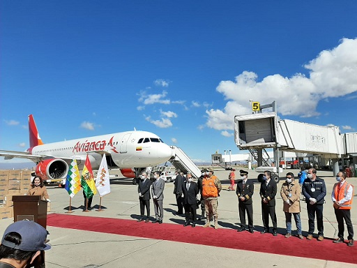 Este 2 de abril en vuelo de AVIANCA procedente de Bogota- Colombia, arribó al Aeropuerto Internacional El Alto una carga de ayuda para enfrentar al coronavirus donado por la Fundación Alibaba, con la descripción “5 respiradores médicos, 100 mil barbijos normales y 20 mil kits de diagnóstico de dicho virus”.