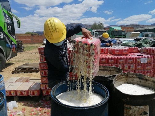 Este viernes 20 de noviembre en Tarija, la Gerencia Regional de la Aduana Nacional realizó la destrucción de cerca de 60 toneladas (60.000 kilogramos) de vino, cerveza y otras bebidas alcohólicas ingresadas al país de contrabando y valoradas en 450.000 bolivianos, aproximadamente.