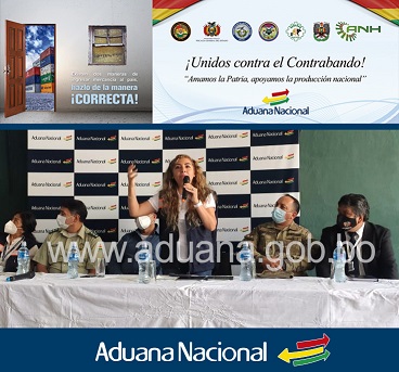 Así lo reportó este lunes la Presidenta Ejecutiva de la entidad, Karina Serrudo durante una conferencia de prensa brindada en la Aduana Interior de la capital chapaca, junto al Viceministro de Lucha Contra el Contrabando Cnel. Gonzalo Rodríguez, el comandante de la Tercera División de las FFAA Cnel. Augusto Arévalo Oblitas, el Comandante de la Policía Departamental de Tarija Cnel. Sadid Ávila Vega, el Fiscal Departamental de Tarija Wilson Tito Torrez y el Director Distrital de la Agencia Nacional de Hidrocarburos Ing. Victor Hugo Baltazar.