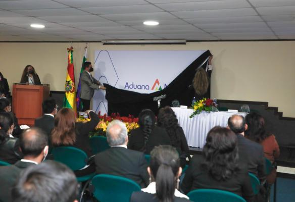 La Paz, 14 de septiembre de 2021. AN. La Aduana Nacional presentó, este martes, una nueva imagen institucional que “representa y acompaña el cambio, refleja los valores y compromiso de nuestro personal y que será el símbolo de una administración aduanera moderna, eficiente, ágil y comprometida con Bolivia” afirmó hoy la presidenta de la institución, Karina Serrudo, en un acto en el que también se presentó el Sistema Único de Modernización Aduanera (SUMA).