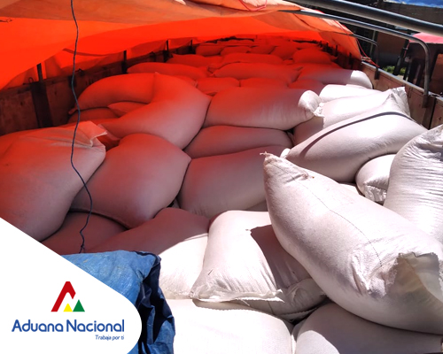 La Paz, 21 de abril 2022. AN Más de 225.000 bolivianos fueron comisados en productos de maíz, arveja seca y ají molido amarillo, aparentemente procedentes de Perú, gracias a las diferentes labores de inteligencia realizadas por la Aduana Nacional, en la localidad de Guaqui ubicado a orillas del lago Titicaca a 92 km y Afrazanal cerca a Desaguadero, ambos situados en el departamento de La Paz.