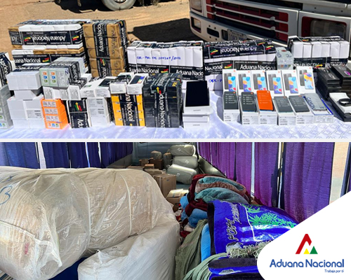 Aduana incauta fardos de ropa nueva y celulares valorados en más de Bs 430.000