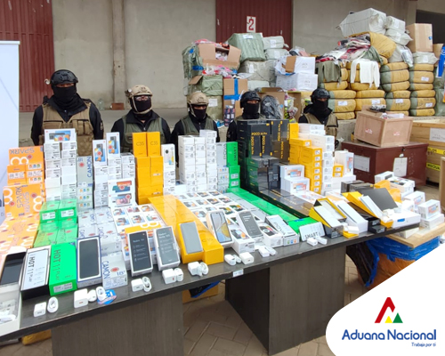 La Paz, 1 de junio de 2022. AN.- La Aduana Nacional incautó 1.168 aparatos electrónicos valorados en 2,5 millones de bolivianos e interceptó 15 toneladas en mercancía variada no declarada y sin certificación proveniente de China, misma que pretendía ser liberada para nacionalizarse; ambas intervenciones se desarrollaron tras recibir una denuncia en el departamento de La Paz, informó la Administradora de Aduana Interior, Wilma Cardozo.