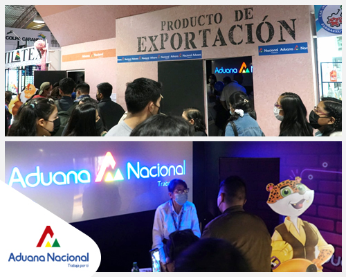 Además, el interior del stand contiene fotos que narran los hitos de la institución durante el 2021 y lo que va de la presente gestión, como los records en recaudación de tributos aduaneros, records en comisos de mercancía ilegal, incremento de Puntos de Inspección Aduanera, entre otros; con el fin de reflejar el arduo trabajo de la Aduana en su proceso de agilización, tecnificación y transparentación a nivel nacional.