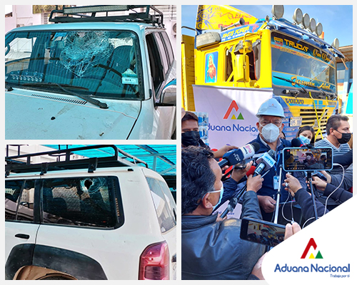 Lastimosamente, las piedras hirieron el pómulo izquierdo de un funcionario aduanero y el hombro de otro técnico; ambos se encuentran hospitalizados en la Caja Nacional de Salud para realizarse exámenes de tomografía. En ese marco, tanto el camión como la mercancía ilegal fueron trasladados a Recinto Aduanero ALBO S.A. para proceder con el inventario correspondiente.