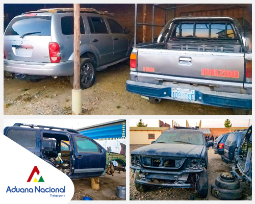 “Se tiene una valoración preliminar de los vehículos indocumentados que supera los 3.244.000 bolivianos. Entre los motorizados se tienen 12 vagonetas (Jeep, Nissan) y dos camionetas (Mazda, Chevrolet)”, precisó la autoridad.