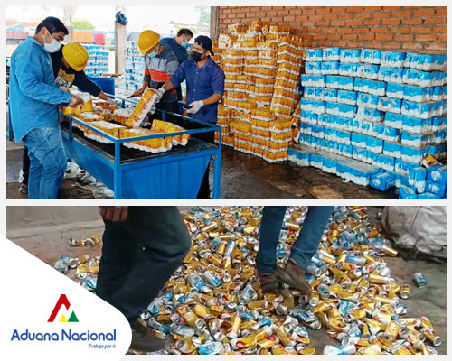 Estos productos son considerados como “prohibidos” por no contar con certificación sanitaria de origen, Ley 259 de bebidas alcohólicas y el Decreto Supremo 26510, por tanto, son destinados para su destrucción de acuerdo a Resolución Administrativa emitida por la Administración de Aduana.