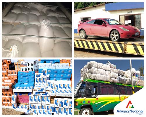 Entre la mercancía más comisada por la Unidad de Control Operativo Estratégico (UCOE), entre enero y septiembre, se encuentran los motorizados, valuados en más de 327.7 millones de bolivianos; seguido por prendería, calzados y accesorios tanto nuevos como usados, valorados en 30.6 millones de bolivianos; también se incautaron alimentos como semillas y frutos, además de bebidas, con un valor que supera los 28.1 millones de bolivianos y aparatos electrónicos de todo tipo, valuados en más de 24.7 millones de bolivianos.