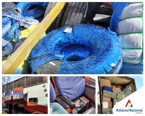 Cochabamba, Aduana interceptó ropa usada y artículos perecederos escondidos en compartimientos secretos y bajo llantas