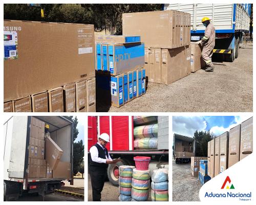 La Paz, 8 de noviembre 2022 AN.- Tras una oportuna intervención, el personal aduanero impidió la fuga de un camión que transportaba aparatos electrónicos y prendas de vestir ilegales por la carretera Patacamaya – La Paz. A este hecho se suma un segundo operativo en Guaqui, comisándose en ambos televisores, reproductores de música, ropa interior y material plástico valorados en más de 1,3 millones de bolivianos, informó el Gerente Regional de La Paz, Antonio Claudio Martínez.