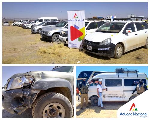 Los motorizados, 49 vagonetas, 18 automóviles, cuatro tracto camiones, ocho camionetas, dos chasis combinados, una motocicleta, un camión y un ómnibus fueron valorados en más de 9 millones de bolivianos.