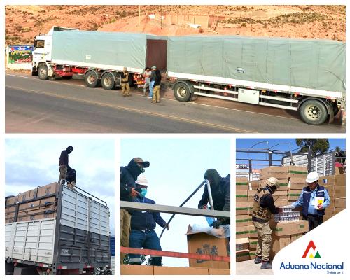 El pasado 15 de diciembre, un equipo del Grupo de Reacción Inmediata Aduanero (GRIA) se desplazó por la carretera a Potosí, dando encuentro a un camión con su remolque Marca Volvo con Placa de Control 2180 YIF en la localidad de San Antonio, el cual transportaba cajas de cigarrillo valorados en más de medio millón de bolivianos.