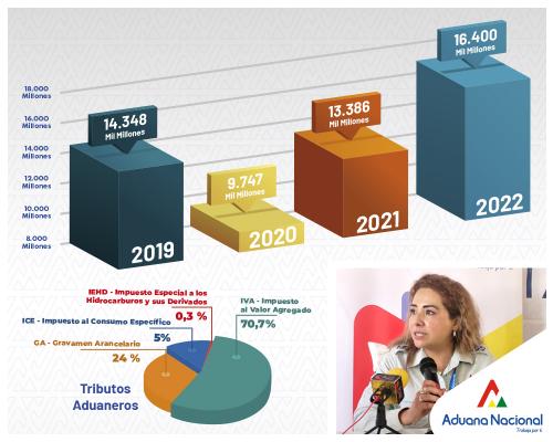 La Aduana Nacional tenía como meta de recaudación 14.060 millones de bolivianos, cifra establecida por el Ministerio de Economía para la gestión 2022, de forma positiva la entidad superó este monto en 16,6%, gracias al crecimiento del número de importaciones.