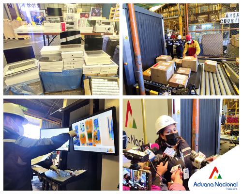 En ese marco, se destacan dos casos registrados en enero de la presente gestión: el primero fue mediante el arribo de mercancia Courier. En un despacho en el que se declaró un Rac y al ingresar al escáner se detectó la existencia de celulares dentro del mismo. Y en una carga posterior las cajas de los celulares.