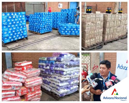 Santa Cruz, 13 de febrero 2023 AN.- Por las fiestas de carnaval, la Aduana Nacional intensificó operativos durante las dos últimas semanas, comisando más de 77 toneladas de bebidas alcohólicas y sacos de harina de procedencia brasilera y argentina. Las mismas eran trasladadas en seis vehículos (dos flotas, dos camiones, un furgón y una vagoneta); asimismo parte de esta mercancía es resultado de un allanamiento, registrado en la ciudad de Santa Cruz, informó el Gerente Regional, José Luis Mollinedo.