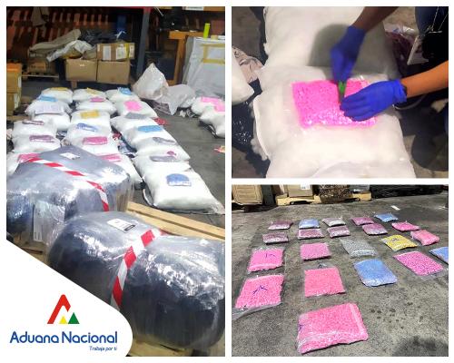 Esta droga sintética presentada en 68.000 píldoras fue identificada como éxtasis y metanfetamina, “estas sustancias ilícitas fueron valoradas en más de dos millones de dólares, con los cuales se está afectando al narcotráfico, mencionar que este hallazgo es el resultado de los controles que realiza la Aduana, durante las 24 horas del día”, precisó Mollinedo.