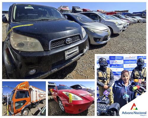 De los 40 vehículos observados, 24 son vagonetas, 12 automóviles, un camión, un minibús, un Chasis Cabinado y una motocicleta; todos sin documentos que acrediten su legal importación y valorados en más de 5.4 millones de bolivianos.