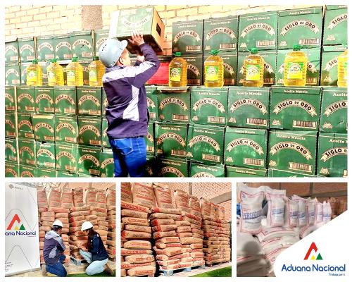 Oruro, 9 de junio 2023 AN.- Tras un gran despliegue operativo por seis rutas alternas del departamento de Oruro, la Aduana Nacional comisó 53 toneladas de harina, aceite y arroz que eran trasladados sin certificación del Servicio Nacional de Sanidad Agropecuaria e Inocuidad Alimentaria (SENASAG), ni documentos que avalen su legal importación a territorio boliviano. Toda esta mercancía fue interceptada en Vichuloma, Sepulturas, Choquecota, Tranca de Capachos, Pazña y en la ciudad de Oruro, informó la Gerente Regional, Patricia Trujillo.