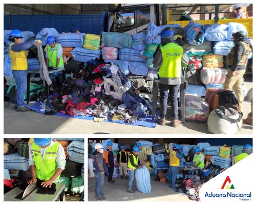 “Estas 33 toneladas de ropa usada provenientes mayormente de Chile y una parte de Argentina fueron comisadas a través de 121 operativos de control, dirigidos por los agentes del Grupo de Reacción Inmediata Aduanera (GRIA) y técnicos de los Puntos de Inspección Aduanero (PIA) Pajchani y El Cóndor; quienes hallaron gran parte de esta mercancía ilegal en buses de transporte público y camuflados en cajas de madera”, manifestó.