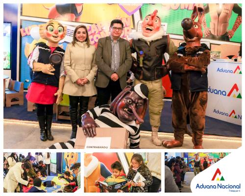 La Paz, 2 de agosto 2023 AN.- Con el fin de promover la educación tributaria de forma didáctica y entretenida, la Aduana Nacional estrenó este miércoles su stand denominado “Saga Aduanera” en la 27º versión de la Feria Internacional del Libro de La Paz (FILLP), el mismo tiene como característica principal la presentación de un grupo de superhéroes y villanos que se enfrentarán por el control de las fronteras y la lucha contra el contrabando. Este stand recibirá al público todos los días en el Campo Ferial Chuquiago Marka hasta el 13 de agosto.