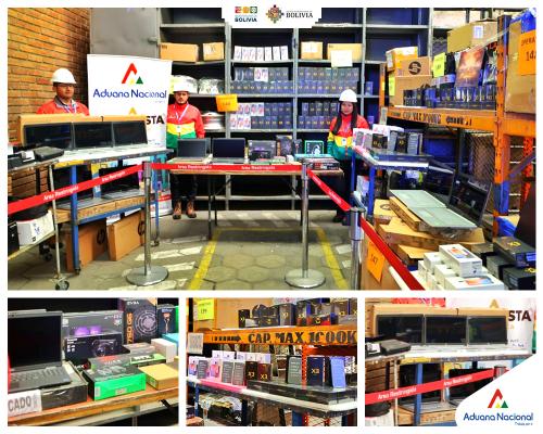 El Alto, 15 de septiembre 2023 AN.- La Aduana Nacional dispuso a partir de este 15 de septiembre seis toneladas de mercancía comisada y abandonada en el Aeropuerto Internacional de El Alto, los cuales, serán puestos en lotes para "Subasta Electrónica 2023", mediante la plataforma virtual www.aduana.gob.bo/subasta. La Administradora de Aduana Aeropuerto El Alto, Silvia Macias, informó que en el catálogo de lotes se encuentran laptops, celulares, partes de repuestos, entre otros.