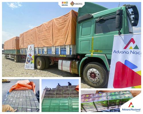 “Una vez más, gracias a la colaboración de la ciudadanía, a la rápida acción del Grupo de Reacción Inmediata (G.R.I.A.) y al oportuno trabajo de la unidad jurídica de la Aduana, se logró identificar e interceptar un camión repleto de cigarrillos ilegales y como consecuencia de ese hecho, se tiene la detención preventiva del conductor y su acompañante de relevo, que están siendo imputados por el delito de contrabando” informó el Gerente Regional Cochabamba, Hugo Domínguez.