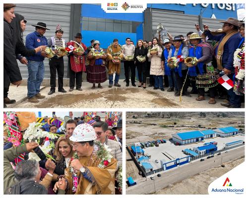 Potosí, 10 de noviembre 2023 AN.- Con el corte de cinta, descubrimiento de plaqueta y un recorrido por los nuevos ambientes, el Presidente del Estado Plurinacional de Bolivia, Luis Arce Catacora, el Ministro de Economía y Finanzas Públicas, Marcelo Montenegro y la Presidenta Ejecutiva de la Aduana Nacional, Karina Serrudo, inauguraron este viernes infraestructuras de la Gerencia Regional Potosí y la Administración de Aduana Interior, ubicados en Azángaro, comunidad Samasa Baja de la provincia Tomas Frías. Toda la infraestructura fue construida con un monto de 20.848.795 bolivianos, con el objetivo de atender la tramitación aduanera optimizando los tiempos de despacho de mercancías.