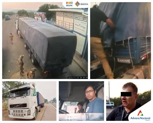 Ante lo ocurrido, la Gerencia Regional Santa Cruz de la Aduana Nacional solicitó apoyo al Comando Departamental de la Policía para localizar al camión tipo tráiler marca Volvo, presentando la denuncia formal ante el Ministerio Público, por presunta comisión de los delitos de Contrabando Agravado, seguido de Favorecimiento y Facilitación al Contrabando, Sustracción de Prenda Aduanera y Asociación Delictuosa.