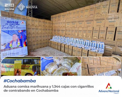 Además, en el municipio de Sacaba, comisó 1.344 cajas con cigarrillos de la marca Carnival, provenientes de Paraguay, que eran transportados por un camión sin el respaldo de la documentación requerida para la internación ni del pago de tributos, como establecen las normas nacionales.