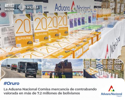 Oruro, 21 de marzo 2024 AN.- En tan solo tres operativos realizados la segunda semana de Marzo, la Aduana Nacional comisó mercancía de contrabando valorada en más de 7.2 millones de bolivianos. La Gerente Regional de Aduana Oruro, Patricia Trujillo, informó, que como resultado de estas acciones se tiene cuatro aprehendidos, procesados por el delito de favorecimiento y facilitación al contrabando.
