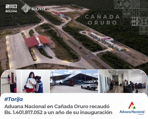 Tarija, 28 de marzo 2024 AN.- A días de cumplir un año de inauguración del Recinto Multipropósito de Frontera Cañada Oruro “Infante Rivarola” ubicado en el límite territorial con Paraguay, el Gerente Regional Aduana Tarija, Carlos Vilar Toro, resaltó que “el complejo opera con todos sus regímenes aduaneros: importación a consumo, exportación, tránsito aduanero, viajeros, admisiones temporales para reexportación en el mismo Estado; logrando recaudar en la gestión 2023, la suma de Bs. 1.401.817.052, alcanzando el 113,8% de crecimiento respecto a la gestión 2022”, destacó la autoridad.