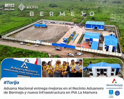 La inversión en el mejoramiento de la infraestructura aduanera en Bermejo y la construcción de la infraestructura del Punto de Inspección Aduanera La Mamora fue de 4,3 millones de bolivianos, provenientes de recursos propios que se obtuvieron mediante la reducción de los gastos de alquiler de oficinas y viviendas por parte de la Aduana Nacional.