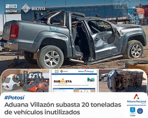 Villazón, 28 de mayo 2024 AN.– La Aduana de Frontera Villazón concluyó con éxito la subasta ecológica de 14 vehículos inutilizados, previamente decomisados por circular en el departamento de Potosí sin la documentación que acredite su legal importación. Muchos de estos vehículos presentaban placas falsas o clonadas, y algunos continuaban en circulación a pesar de haber expirado el plazo de admisión temporal.
