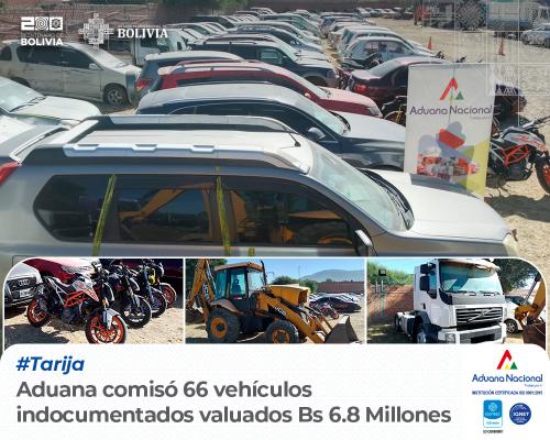 Tarija, 29 de mayo de 2024 AN.- “En un duro golpe al contrabando de vehículos indocumentados, la Aduana Nacional ha comisado 66 unidades en el departamento de Tarija, entre el 1 de enero al 17 de mayo del presente año. La mercancía tiene un valor CIF de Bs 6.877.520,10; debo indicar que 30 de los motorizados se encuentran en una etapa preliminar con acta de intervención e investigación y, con los restantes 36 vehículos se ha concluido con la evaluación de descargos, probándose el ilícito de contrabando, con resolución sancionatoria, a la espera de la certificación para la disposición correspondiente, emitida por la Dirección Nacional de Prevención e Investigación de Robo de Vehículos (DIPROVE)” enfatizó Carla Aguirre, Administradora Aduana Interior Tarija.