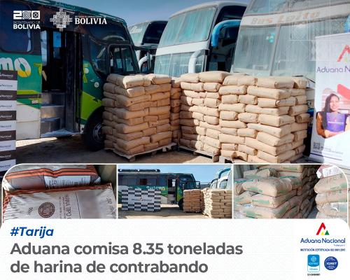 Tarija, 13 de junio 2024 AN.– “La Aduana Nacional, a través, del Grupo de Reacción Inmediata Aduanera (GRIA) Tarija, en la Comunidad de Palos Blancos capital del cantón Chimeo del municipio de Entre Ríos – Tarija, comisó vehículo indocumentado que transportaba 8.350 kilogramos de harina de trigo tipo 000 marcas viada y forzharina, industria Argentina, con un valor CIF de Bs. 26.117,33, la misma que no contaba con la Declaración de Mercancías de Importación (DIM), Factura Comercial, ni Certificación de Inocuidad Sanitaria” informó Carla Mariela Aguirre, Administradora Aduana Interior Tarija.