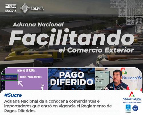 Sucre, 19 de julio 2024 AN.– La Aduana Nacional da a conocer a comerciantes e importadores que entró en vigencia el Reglamento de Pagos Diferidos a Tributos Aduaneros de Importación aplicable a “Declaración de Importación” bajo la modalidad de Despacho General. Para solicitar Pagos Diferidos el comerciante e importador tiene la oportunidad de nacionalizar su mercancía con el pago de una cuota inicial del 40% que posibilita la liberación de su mercancía y la prórroga de pago restante del 60% en cuotas mensuales, bimestrales, trimestrales o semestrales dentro la gestión; previa presentación de garantía (s) a primer requerimiento” destacó Alberto Jesús Vaca, Administrador Aduana Interior Sucre.