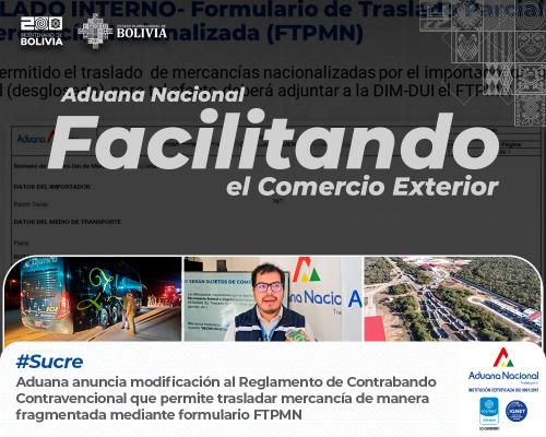 Sucre, 01 de agosto 2024 AN.– La Administración Aduana Interior Sucre, informa a importadores, transportadoras y comerciantes minoristas que desde el 20 de junio de la presente gestión está vigente la modificación al Reglamento de Contrabando Contravencional, los cambios en la norma actualmente permite a los importadores trasladar su mercancía de manera fragmentada o parcial en el interior del país, solicitando el Formulario de Traslado Parcial de Mercancía Nacionalizada (FTPMN) y; en caso de aquellas personas que por algún motivo no portaran la documentación el Formulario de Retención de Mercancía (FRM), enfatizó Alberto Jesús Vaca, Administrador Aduana Interior Sucre.