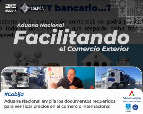 Cobija, 16 de agosto de 2024. AN.- En el marco de su política de facilitación del comercio internacional, la Aduana Nacional ha emitido una nueva minuta de instrucción que amplía los documentos probatorios requeridos para comprobar el precio realmente pagado o por pagar de las mercancías importadas.