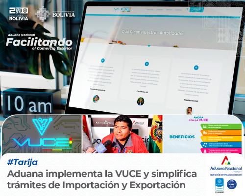 Tarija, 6 de septiembre de 2024. AN.- La Aduana Nacional implementa la Ventanilla Única de Comercio Exterior (VUCE), conforme establece el Decreto Supremo 5211 del 28 de agosto pasado. Esta normativa tiene como objetivo “simplificar, agilizar, estandarizar y modernizar las operaciones de comercio exterior, aprovechando los avances en tecnologías de la información y comunicación” destacó Ludueño Condori, Gerente Regional Aduana Tarija.