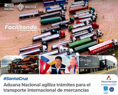 Santa Cruz, 24 de septiembre de 2024. AN.- La Aduana Nacional ha implementado medidas para agilizar los trámites y procedimientos relacionados con el transporte internacional de mercancías, tanto de importación como de exportación, con el objetivo de facilitar la labor de los transportistas.
