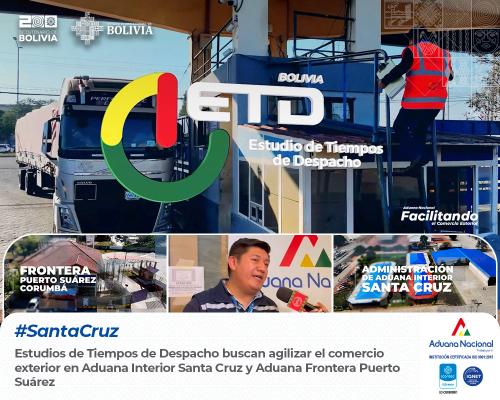Santa Cruz 16 de diciembre de 2024. AN.- La Aduana Nacional realizó dos nuevos Estudios de Tiempos de Despacho (ETD), en la Aduana Interior Santa Cruz y la Aduana Frontera Puerto Suárez. Estos estudios tienen el objetivo de reducir los tiempos de despacho en puntos estratégicos: Santa Cruz, el principal motor del comercio exterior del país, y Puerto Suárez, que es clave para la hidrovía Paraguay-Paraná.