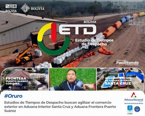 Oruro, 19 de diciembre de 2024. AN.- La Aduana Nacional realizó dos nuevos Estudios de Tiempos de Despacho (ETD), en la Aduana Interior Santa Cruz y la Aduana Frontera Puerto Suárez. Estos estudios tienen el objetivo de reducir los tiempos de despacho en puntos estratégicos: Santa Cruz, el principal motor del comercio exterior del país, y Puerto Suárez, que es clave para la hidrovía Paraguay-Paraná.