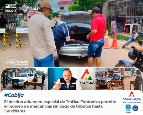 En el caso de Cobija, el ingreso de productos de tráfico fronterizo se realiza en el Puente de la Amistad y Puente Internacional.