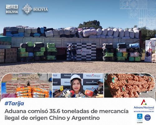 Tarija, 8 de mayo de 2025. AN.- La Gerencia Regional Tarija de la Aduana Nacional, a través de la Unidad de Control Operativo Estratégico (UCOE) efectuó 5 operativos; comisando alimentos procesados, cebolla, prendería nueva y usada, ya que no presentaron documentación de respaldo, la mercancía comisada es de origen Chino y Argentino, alcanzando un valor CIF de Bs. 520.899,94.- (Quinientos Veinte Mil Ochocientos Noventa y Nueve 94/100 Bolivianos)