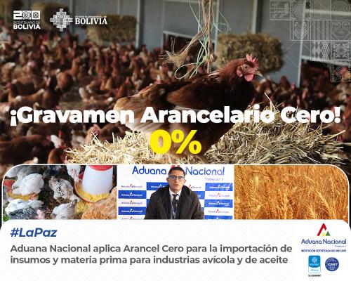 La Paz, 2 de junio de 2025. AN.- El Gobierno del Presidente Luis Arce dispuso la reducción del pago de aranceles para la importación de insumos y materias primas destinadas a la producción de aceite y carne de pollo. Esta medida de Gravamen Arancelario Cero busca fortalecer la producción nacional de alimentos de primera necesidad, según el Decreto Supremo 5401, aprobado el 23 de mayo, informó el Gerente Regional de Aduana La Paz, Mauricio Miranda.