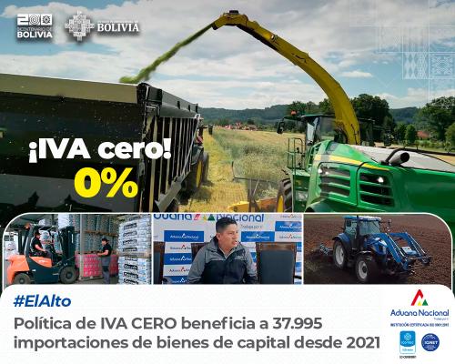 El Alto, 27 de junio de 2025.AN.- El Gobierno de Luis Arce implementó en agosto de 2021 la política de IVA CERO para la importación de bienes de capital, que representa la nacionalizaron 37.995 máquinas en el periodo 2021-2024. Estas importaciones, que alcanzan un valor de 9.742 millones de bolivianos en valor CIF (costo, seguro y flete), fortalecieron principalmente los sectores agrícola y manufacturero. La medida generó un sacrificio fiscal de 1.472 millones de bolivianos, monto que la Aduana Nacional ha dejado de percibir en beneficio de los productores bolivianos, informó el Administrador de Aduana Interior La Paz, Miguel Cornejo.