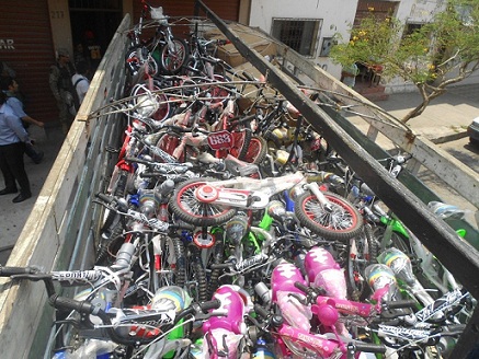 Santa Cruz: En 4 camiones trasladaron bicicletas y juguetes de contrabando hallados en depósito