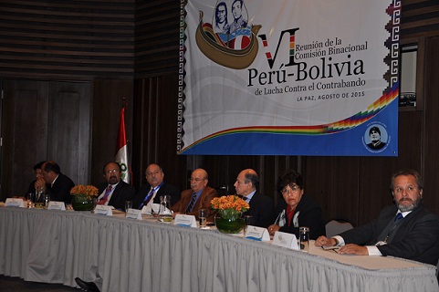El 13 y 14 de agosto, se realizó la VI Reunión de la Comisión Bilateral Peruano - Boliviana de Lucha Contra el Contrabando, cumpliendo el Plan de Acción de la Declaración de Isla Esteves del Encuentro Presidencial y I Reunión del Gabinete Binacional de Ministros Perú - Bolivia, suscrita el 23 de junio de 2015, en Puno, Perú. En la citada reunión binacional participaron representantes de ambos países a la cabeza de sus Cancillerías y con la participación de los Ministerios de Comercio Exterior, Minería, Agricultura, Transportes, Educación, Hidrocarburos, entre otros, así también Aduanas, Servicios de Propiedad Intelectual, Policías Nacionales, Migraciones y otras, además en el caso de Bolivia la Agencia Nacional para el Desarrollo de las Macroregiones y Zonas Fronterizas (ADEMAF). Entre los principales compromisos acordados, se ha previsto continuar realizando operativos coordinados, simultáneos y conjuntos contra el contrabando de mercancías, hidrocarburos, oro y otros delitos conexos. También se implementarán hasta diciembre de 2015 Planes Progresivos para la formalización del comercio fronterizo y se desarrollará el diagnóstico sobre la situación del lavado de activos y el contrabando y controles transfronterizos conjuntos de divisas y títulos valores. Otro compromiso es contar con la presencia permanente de los servicios de migración y sanidad agropecuaria en el puesto de control integrado aduanero de Desaguadero (Puente Carancas) en octubre de 2015. Asimismo se avanzará en la implementación de los despachos de menor cuantía en el Puente Viejo de Desaguadero y evaluar en otros pasos de frontera. Cabe también resaltar la aprobación de: a) Un Convenio Interinstitucional de entes cabeza de sector de minería de Bolivia y Perú para el control del mineral aurífero en frontera, capacitación a docentes, estudiantes. b) Elaborar campañas educativas respecto al fomento del comercio lícito y respeto a la propiedad intelectual. C) Agilizar la aprobación del Procedimiento de restitución de vehículos con denuncia de robo entre Bolivia y Perú. d) Entidades responsables del control del tráfico de armas, municiones y explosivos evaluarán resultados de operativos de control a septiembre. de 2015. Al cierre del evento, la Presidenta Ejecutiva de la Aduana Nacional, Marlene Ardaya hizo hincapié en que los compromisos asumidos por ambos países deben materializarse con la responsabilidad institucional que merece. Así también avanzar en la ejecución de operativos conjuntos, coordinados y simultáneos frente al contrabando que afecta de sobremanera las economías nacionales.