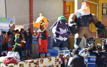 Teatro, juegos, mapas, cuentos, poesías, acrósticos, comics, cuadros estadísticos y otros materiales producidos por los propios estudiantes referidos a la lucha contra el contrabando, fueron el marco del lanzamiento del Programa de Educación “Aprendamos con la Aduana” que fue aplicado por los maestros de la Unidad Educativa Achumani de La Paz, con resultados exitosos. La Presidenta Ejecutiva de la Aduana Nacional, Marlene Ardaya dijo que el Programa en su primera fase busca promover la lucha contra el contrabando en niños de los niveles 5to y 6to de Primaria de nuestro país a través de personajes y material didáctico preparado por su institución para los estudiantes. “Gracias a un año de trabajo entre comunicadores y pedagogos, se ha logrado implementar el programa de forma piloto, con un éxito importante que se refleja en la producción que ustedes pueden apreciar” indicó. Asimismo dijo que se conformado de una saga de personajes que va tener distintos capítulos y que va salir publicada de forma permanente en la prensa nacional a efectos de ir conociendo los efectos que produce el contrabando en el país y por qué no involucrarse en él. La autoridad subrayó que “hacer patria y luchar contra el contrabando, es crear esta cultura tributaria”. Por su parte en representación del Ministerio de Educación, el Subdirector de Educación Regular de La Paz Jaime Achá destacó “la integración de contenidos que van a coadyuvar al desarrollo de las cuatro dimensiones en el proceso de aprendizaje de los estudiantes (ser, saber, hacer y decidir)”. “Será privilegiada la dimensión del ser que indica la práctica de valores sobre la temática aduanera, también tema de la exportación de nuestros productos, la importación de productos hacia nuestro Estado, ello genera la tributación que en sí incentiva el desarrollo de la economía nacional”, destacó. La autoridad educativa pidió a la Aduana no solamente trabajar en una unidad piloto, sino que el Programa “Aprendiendo con la Aduana” se amplíe a toda la ciudad de La Paz, El Alto y las provincias paceñas. A su turno, un estudiante de sexto grado de la Unidad Educativa Achumani dijo “gracias por el proyecto que nos han mandado, que nos aporta un desarrollo más amplio para nosotros, para tener algo nuevo por qué luchar en el futuro”. El Programa “Aprendiendo con la Aduana” tiene el objetivo de informar, educar y crear conciencia sobre Cultura Tributaria Aduanera y lucha contra el contrabando en niños, adolescentes y jóvenes para formar ciudadanos conscientes de la contribución al desarrollo del país a través del pago de tributos aduaneros. Está enmarcado en las políticas del campo de acción tributaria-aduanera y sustentado en la Ley de Educación N° 070 Avelino Siñani – Elizardo Pérez para promover conciencia tributaria en las futuras generaciones en el campo de formación y valores sociocomunitarios tomando en cuenta la etapa de escolarización, ya que los niños, adolescentes y jóvenes son las futuras generaciones quienes aplicarán con mayor efectividad los valores socio comunitarios, reciprocidad, complementariedad, responsabilidad, honestidad y compromiso dando como resultado personas integras, donde el tributar sea una actitud normal, consciente y responsable. El público meta al que se pretende llegar con el Programa en toda su extensión es a niños, adolescentes y jóvenes de 6 a 25 años. La metodología del programa ésta basada en la práctica. Se centra en la aplicación de los conocimientos más que en la adquisición de los mismos. Toma en cuenta las habilidades, conocimientos y actitudes inherentes a la experiencia. Hasta el momento el programa viene realizando acciones en tres módulos: Posicionamiento, Ferias y Unidades Educativas. El módulo de posicionamiento permitió la creación de personajes (héroes y antihéroes) quienes forman parte fundamental del Programa, se empleó sobre todo animales que en su mayoría representan la fauna boliviana, mismos que fueron humanizados para simbolizar marcadamente el comportamiento de actores de la sociedad que se mueven en torno a la Aduana. Por ejemplo entre los héroes están Skan, que representa a los canes detectores de divisas y el olfato para descubrir contrabando, Lupita que simboliza la inteligencia aduanera y Capitán Cóndor que es la representación de la fuerza del Ejército y el COA para combatir el contrabando. Entre los personajes villanos está Pulpinocho, un contrabandista de grandes tentáculos que se vale de todas las mañas para intentar estafar al Estado, Timo el loro maestro de la mentira y Fraudín, una cigüeña contrabandista de apariencia inocente. En cuanto al módulo de ferias, la Aduana viene realizando estos eventos con los personajes inicialmente en las capitales departamentales.